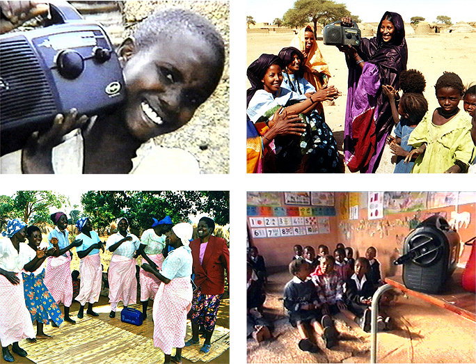 distribute rugged, simple-to-operate radios; wind-up models provide